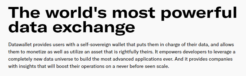 Data is most valuable resource, currently you give it out for free and brokers resell it. All you get back is some access to email or website, while others make money on you withot uyour notice. Datawallet wil llet you choose what Data you sell, to whom and earny directly from it on blockchain.