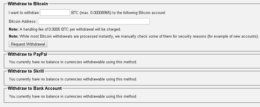 Once you have some funds on the account there will simply be a box where you can enter your Paypal address in and the funds will be sent to you usually withing a few minutes.